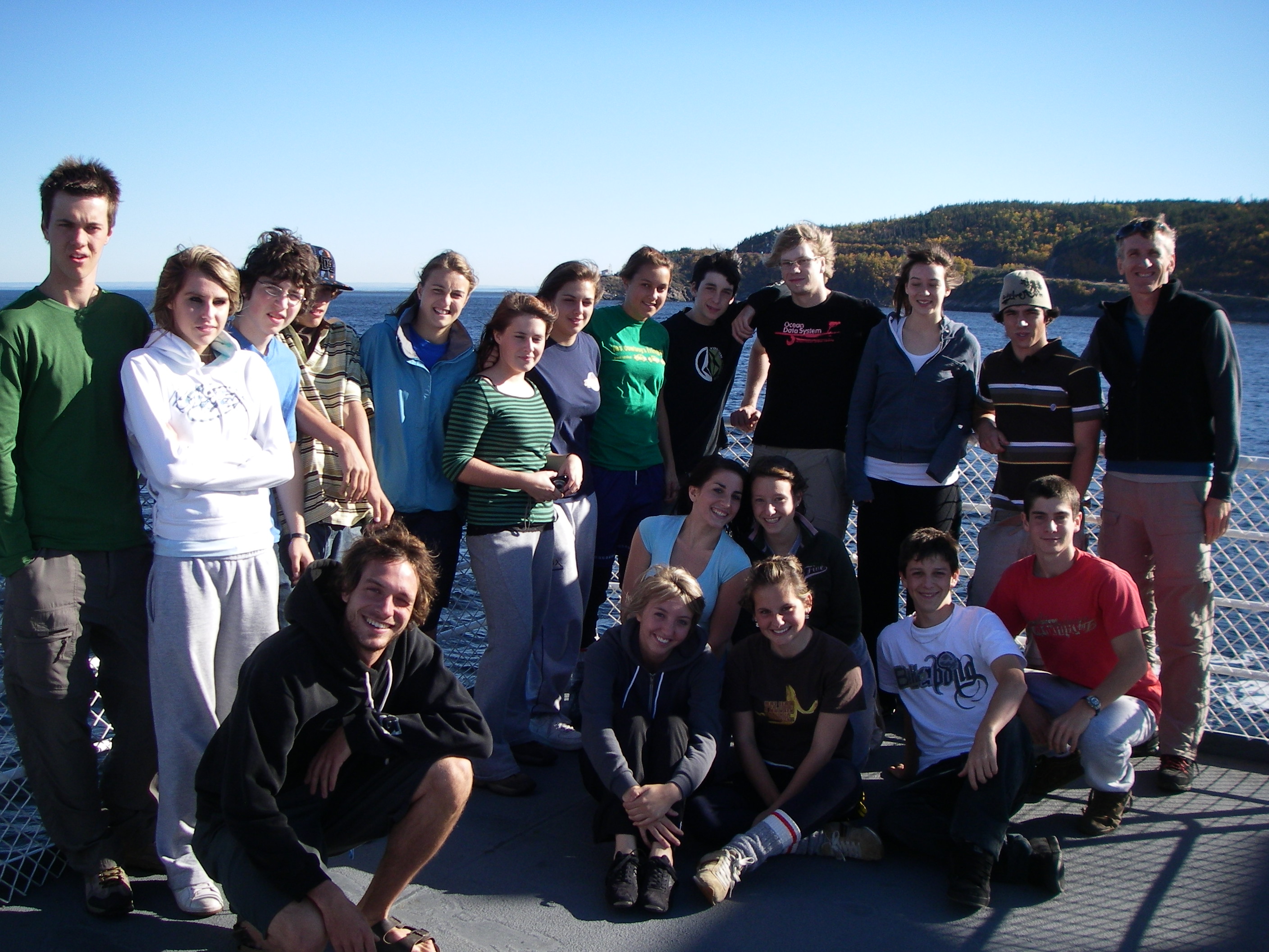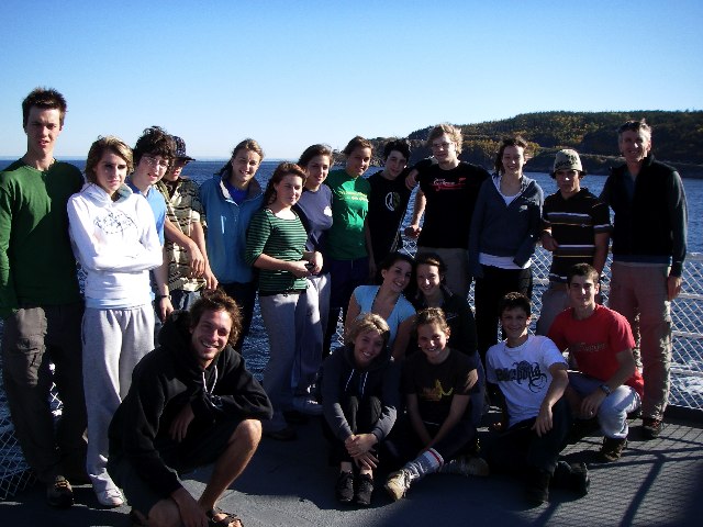 Sortie de kayak de mer à Bergeronnes Avec notre membership de la Route Bleue des Baleines, nous expérimentons cette année, un nouveau site de camping d’une qualité exceptionnelle, situé peu après Bergeronnes (30 km après Tadoussac). Ce site comme en témoignent les photos, est situé directement sur la rive du fleuve et nous permet de contempler (avec beaucoup d’excitation) une faune marine nombreuse et variée : quelques dizaines de phoques, une dizaine de rorquals ainsi qu’une cinquantaine de bélugas qui ont passé à quelques mètres de la rive pendant le déjeuner. Deux jours de météo exceptionnellement clémente et douce pour la saison (mais l’eau est à peine à 5 degrés, soyons prudents). La fin de soirée de jeudi nous a permis d’admirer le passage du majestueux Queen Mary 2, gigantesque et étincelant sur le fleuve. Ah oui ! Nous avons aussi fait du kayak ! Deux jours de magie qui terminent en beauté cette première étape du cours de plein-air 2. On se rappellera le son du souffle des baleines en pagayant avec un magnifique coucher de soleil !
