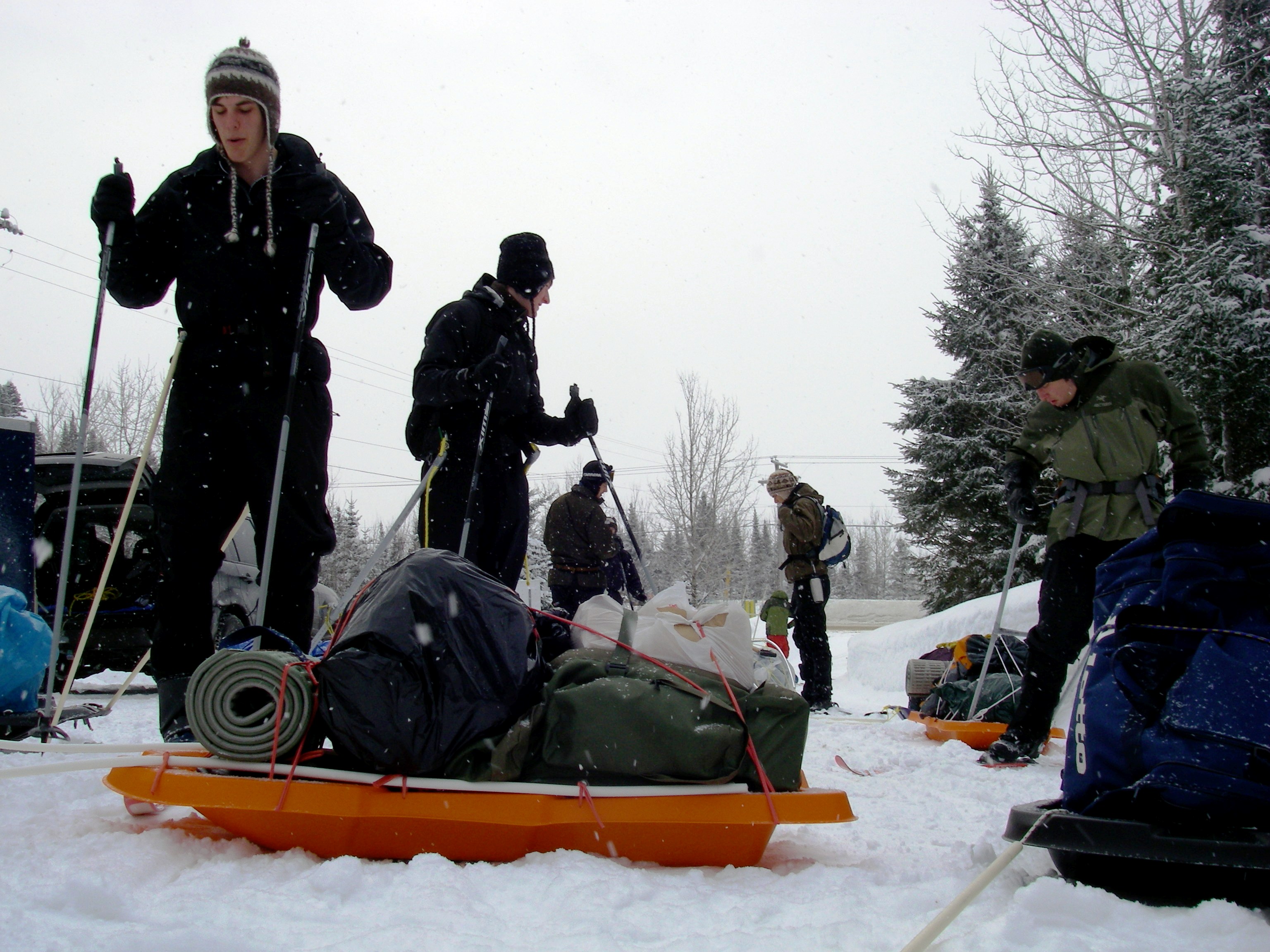 Une nouvelle activité a vu le jour cette année en plein air II. En effet, les élèves ont eu la chance de réaliser un camping hivernal dans la region de Portneuf avec skis de fond hors-piste et pulka. Cette dernière leur a permis de transporter avec un effort moindre qu’en sac à dos, une bonne quantité de bagages. Cette combinaison skis-pulka est le véhicule d’exploration le plus employé par les explorateurs de l’arctique et de l’antarctique (François-Guy Thivierge, Bernard Voyer, etc.) Mentionnons également que les élèves ont eu à construire leur propre pulka à partir d’un traîneau de plastique et d’un harnais en pvc.