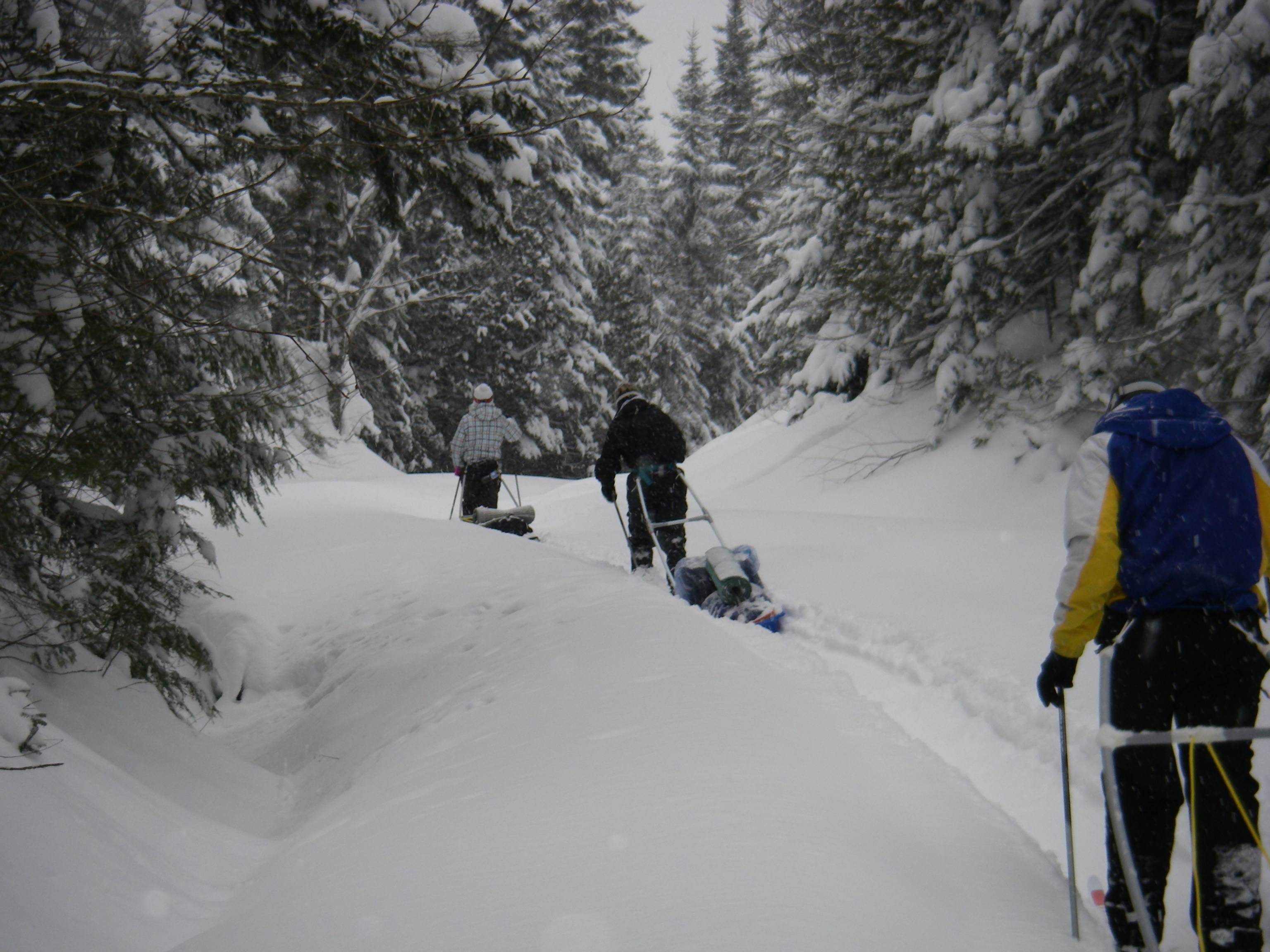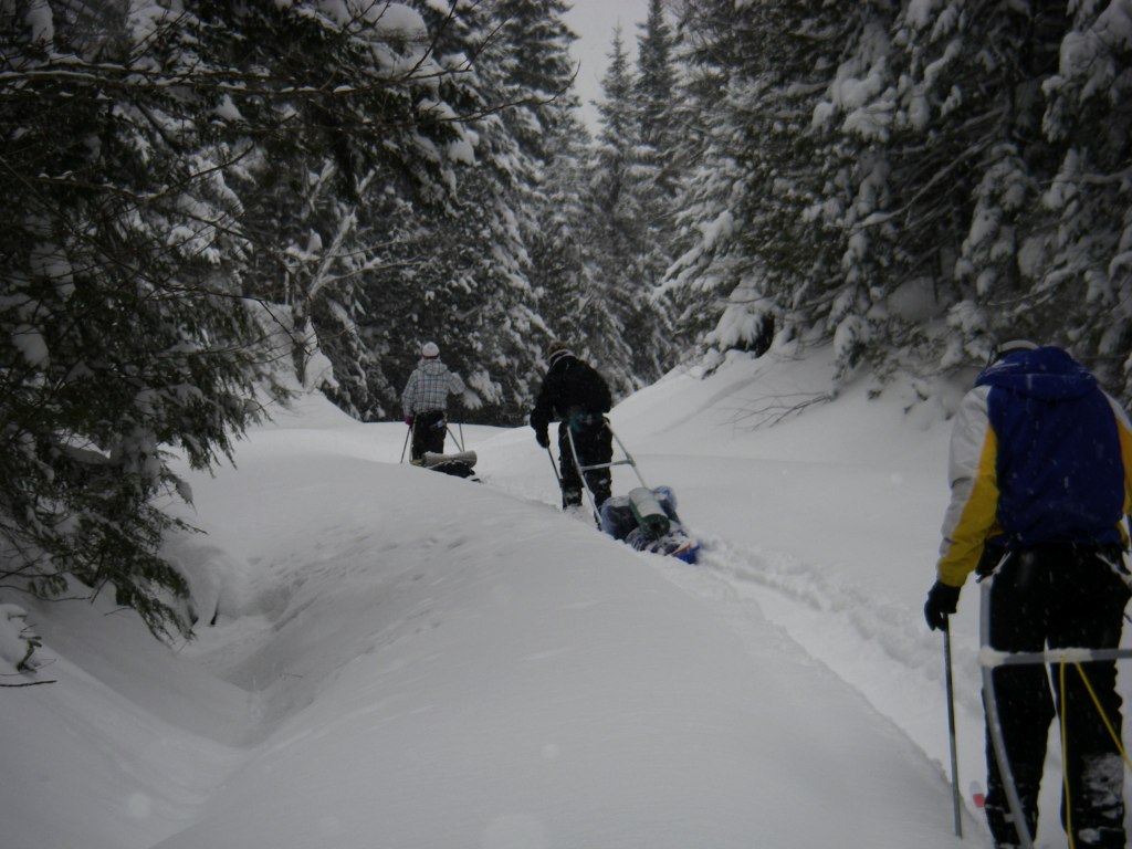 Une nouvelle activité a vu le jour cette année en plein air II. En effet, les élèves ont eu la chance de réaliser un camping hivernal dans la region de Portneuf avec skis de fond hors-piste et pulka. Cette dernière leur a permis de transporter avec un effort moindre qu’en sac à dos, une bonne quantité de bagages. Cette combinaison skis-pulka est le véhicule d’exploration le plus employé par les explorateurs de l’arctique et de l’antarctique (François-Guy Thivierge, Bernard Voyer, etc.) Mentionnons également que les élèves ont eu à construire leur propre pulka à partir d’un traîneau de plastique et d’un harnais en pvc.