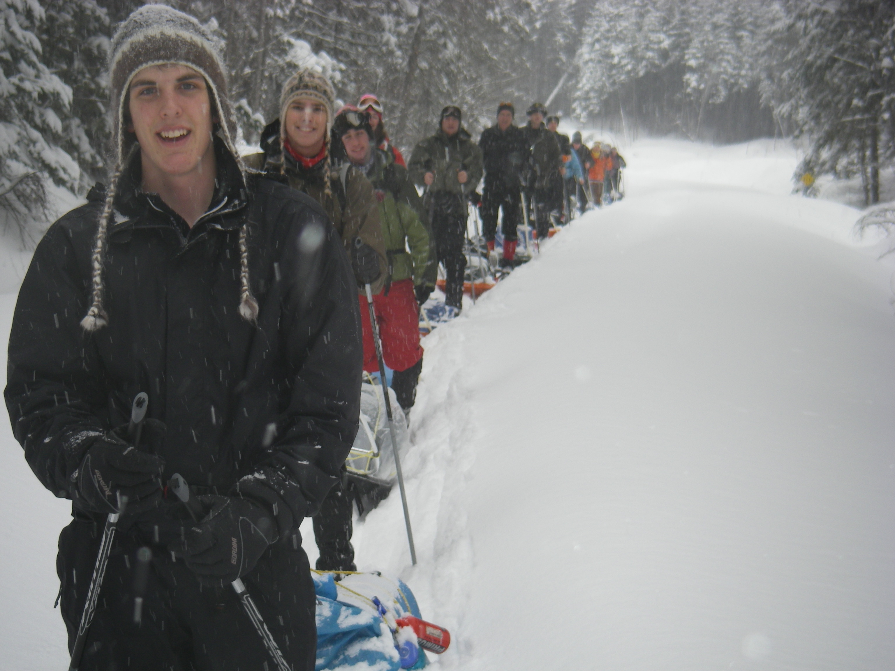 Une nouvelle activité a vu le jour cette année en plein air II. En effet, les élèves ont eu la chance de réaliser un camping hivernal dans la region de Portneuf avec skis de fond hors-piste et pulka. Cette dernière leur a permis de transporter avec un effort moindre qu’en sac à dos, une bonne quantité de bagages. Cette combinaison skis-pulka est le véhicule d’exploration le plus employé par les explorateurs de l’arctique et de l’antarctique (François-Guy Thivierge, Bernard Voyer, etc.) Mentionnons également que les élèves ont eu à construire leur propre pulka à partir d’un traîneau de plastique et d’un harnais en pvc.