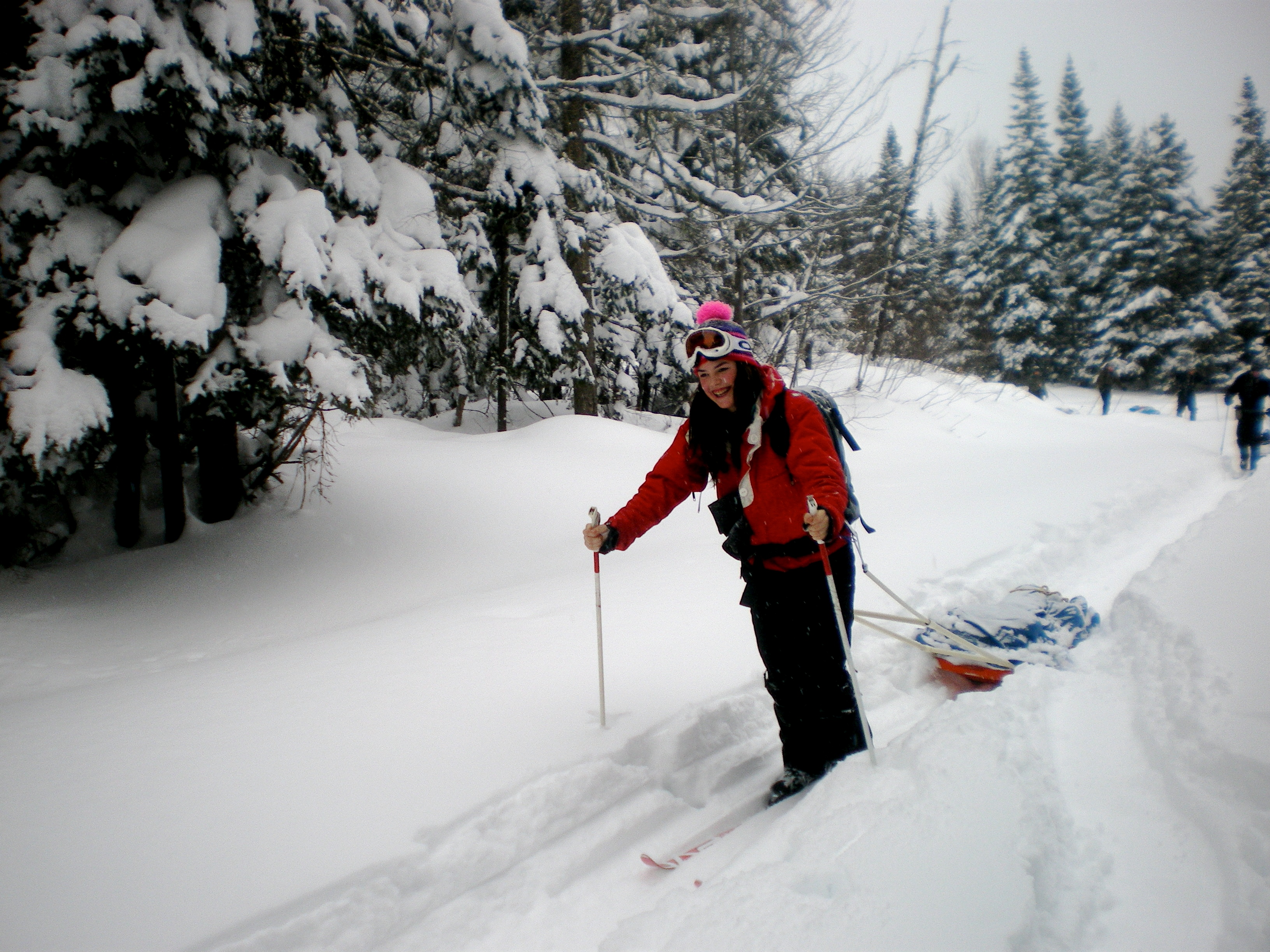Une nouvelle activité a vu le jour cette année en plein air II. En effet, les élèves ont eu la chance de réaliser un camping hivernal dans la region de Portneuf avec skis de fond hors-piste et pulka. Cette dernière leur a permis de transporter avec un effort moindre qu’en sac à dos, une bonne quantité de bagages. Cette combinaison skis-pulka est le véhicule d’exploration le plus employé par les explorateurs de l’arctique et de l’antarctique (François-Guy Thivierge, Bernard Voyer, etc.) Mentionnons également que les élèves ont eu à construire leur propre pulka à partir d’un traîneau de plastique et d’un harnais en pvc.