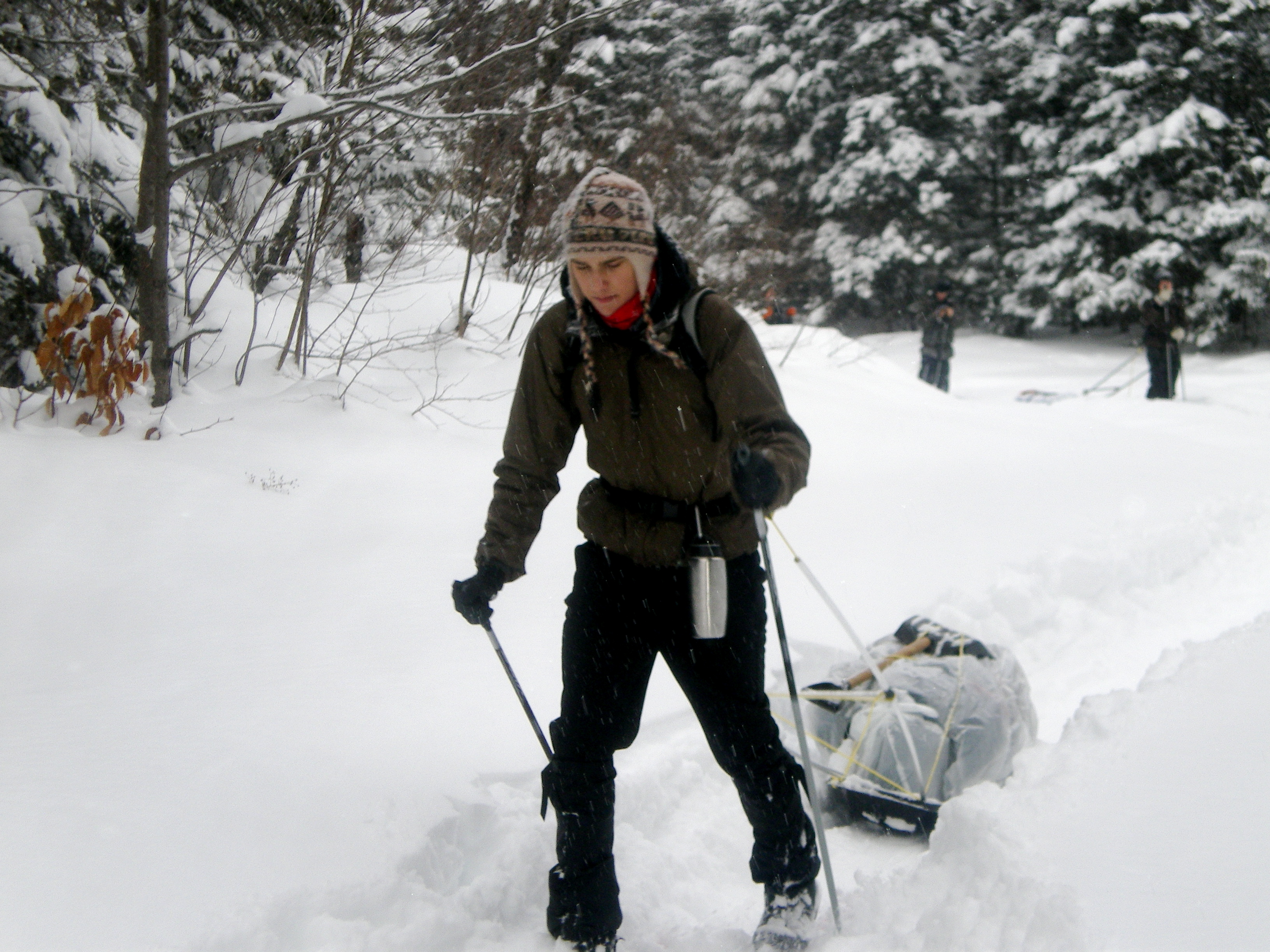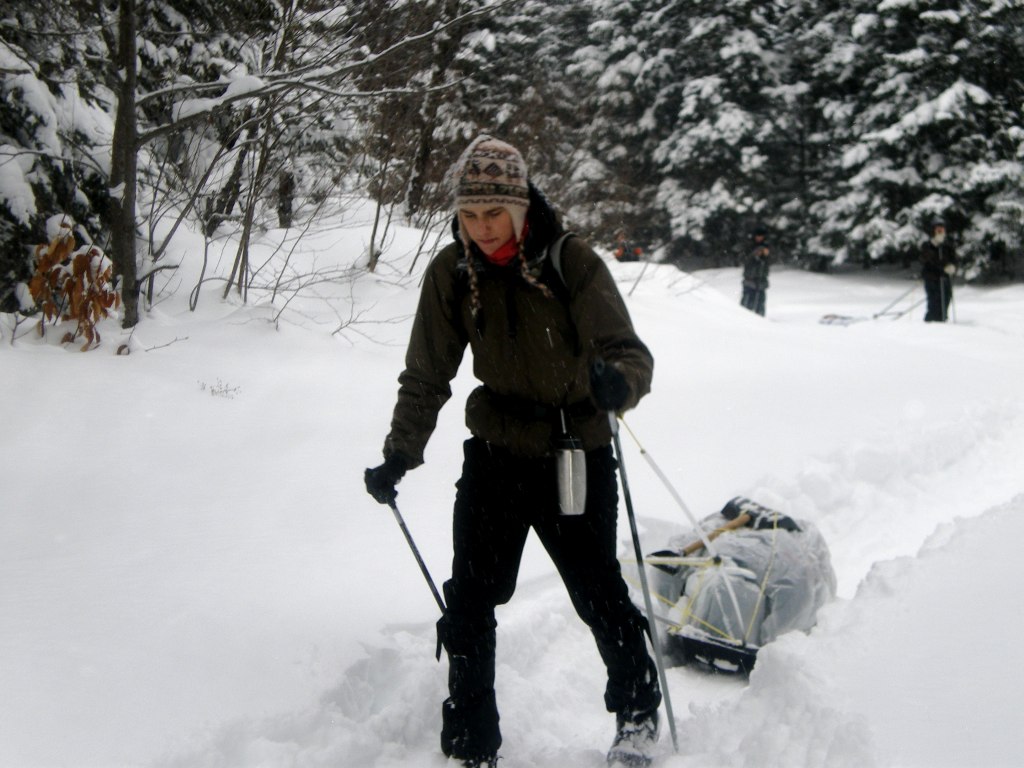 Une nouvelle activité a vu le jour cette année en plein air II. En effet, les élèves ont eu la chance de réaliser un camping hivernal dans la region de Portneuf avec skis de fond hors-piste et pulka. Cette dernière leur a permis de transporter avec un effort moindre qu’en sac à dos, une bonne quantité de bagages. Cette combinaison skis-pulka est le véhicule d’exploration le plus employé par les explorateurs de l’arctique et de l’antarctique (François-Guy Thivierge, Bernard Voyer, etc.) Mentionnons également que les élèves ont eu à construire leur propre pulka à partir d’un traîneau de plastique et d’un harnais en pvc.