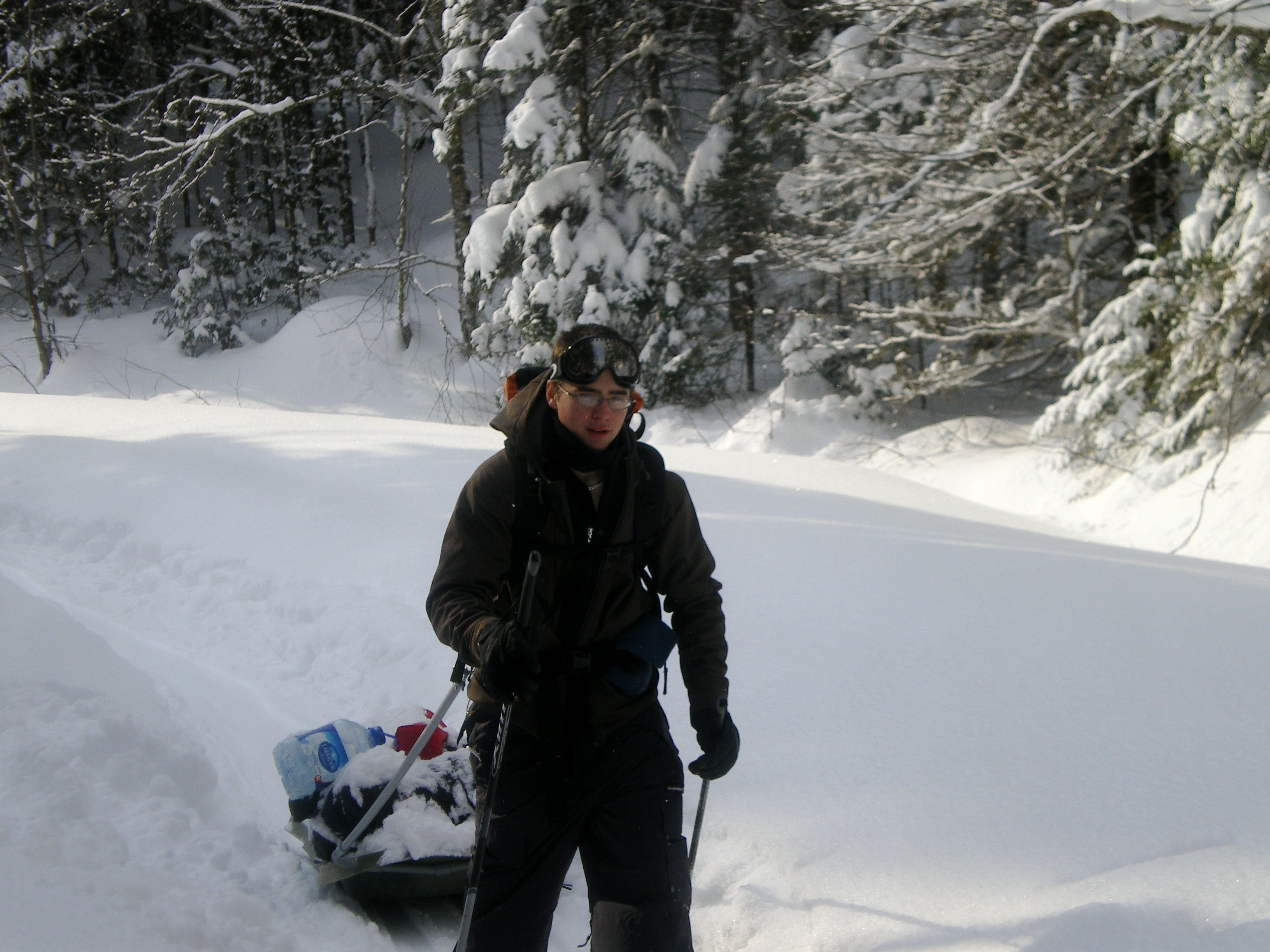 Une nouvelle activité a vu le jour cette année en plein air II. En effet, les élèves ont eu la chance de réaliser un camping hivernal dans la region de Portneuf avec skis de fond hors-piste et pulka. Cette dernière leur a permis de transporter avec un effort moindre qu’en sac à dos, une bonne quantité de bagages. Cette combinaison skis-pulka est le véhicule d’exploration le plus employé par les explorateurs de l’arctique et de l’antarctique (François-Guy Thivierge, Bernard Voyer, etc.) Mentionnons également que les élèves ont eu à construire leur propre pulka à partir d’un traîneau de plastique et d’un harnais en pvc.
