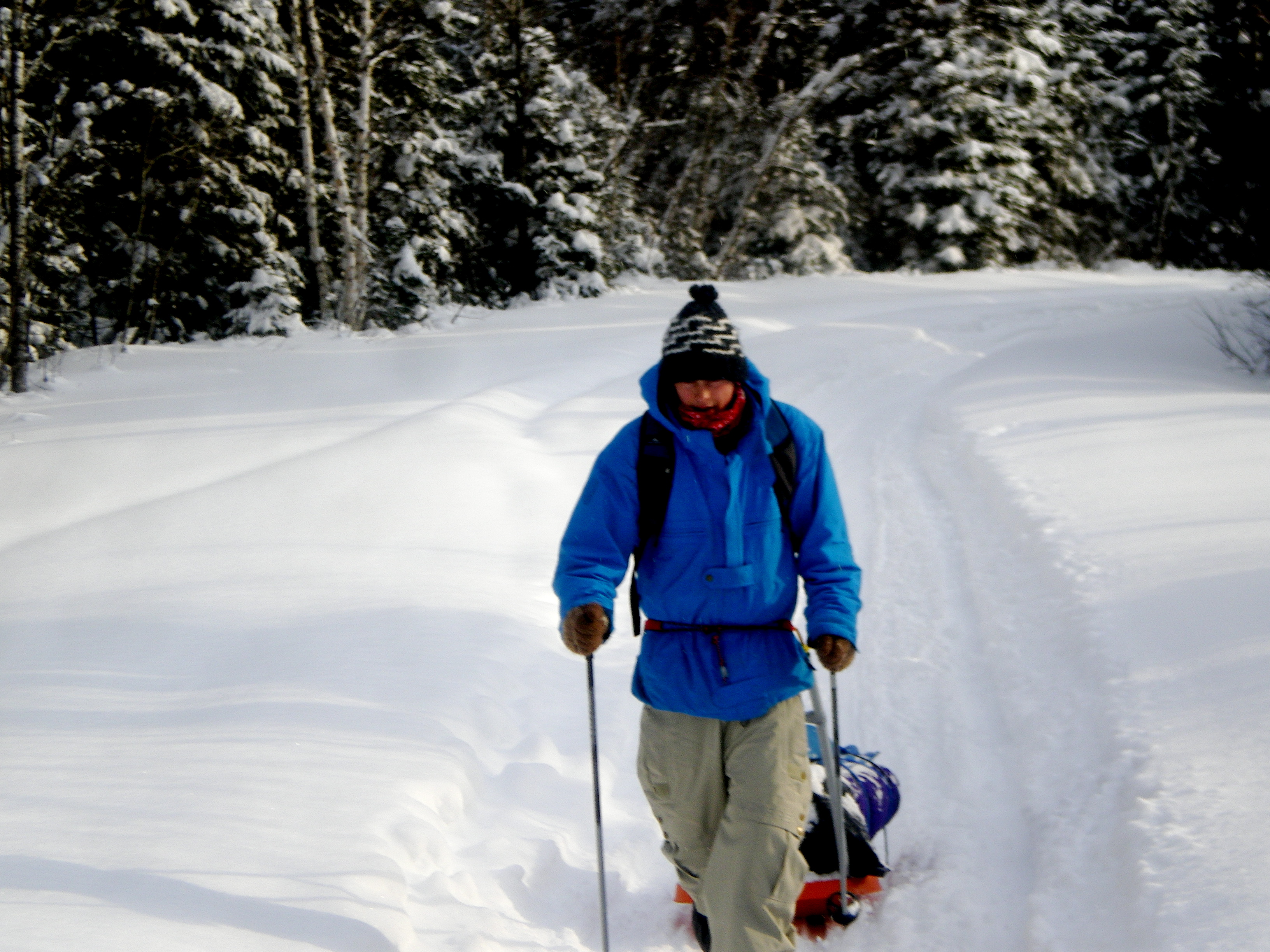 Une nouvelle activité a vu le jour cette année en plein air II. En effet, les élèves ont eu la chance de réaliser un camping hivernal dans la region de Portneuf avec skis de fond hors-piste et pulka. Cette dernière leur a permis de transporter avec un effort moindre qu’en sac à dos, une bonne quantité de bagages. Cette combinaison skis-pulka est le véhicule d’exploration le plus employé par les explorateurs de l’arctique et de l’antarctique (François-Guy Thivierge, Bernard Voyer, etc.) Mentionnons également que les élèves ont eu à construire leur propre pulka à partir d’un traîneau de plastique et d’un harnais en pvc.