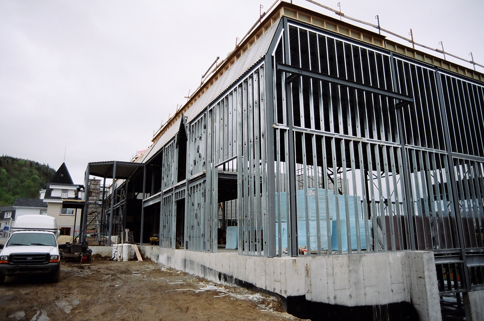 Structures d'aciers et début d'isolation des murs.
