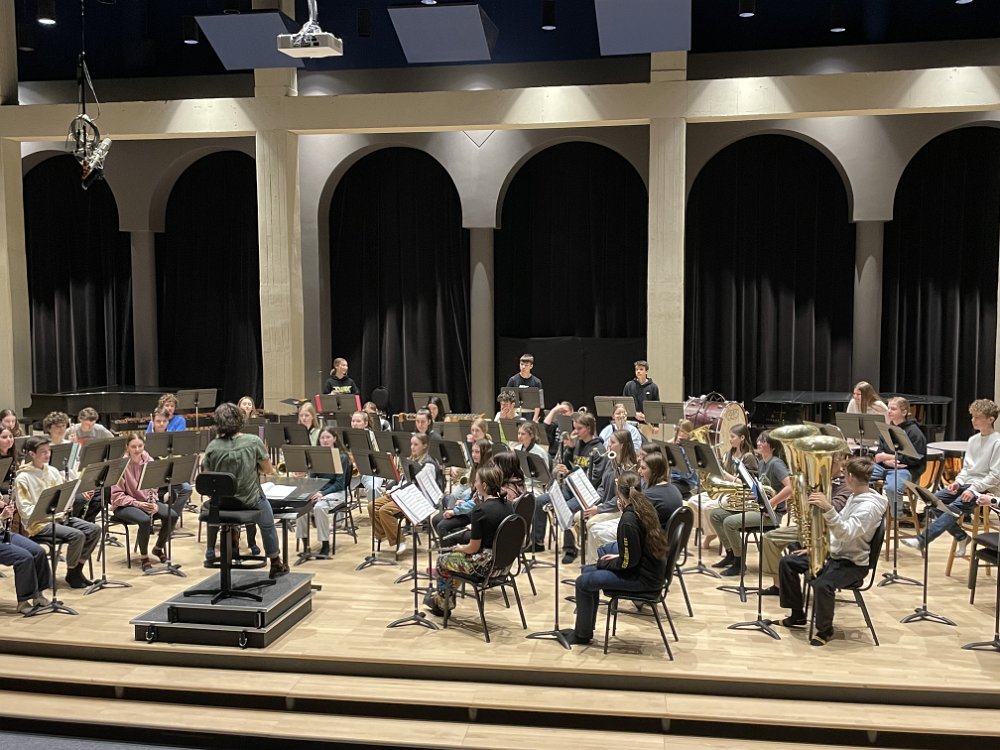 Le 24 mars dernier, les élèves de 3e secondaire sont allés faire une visite au département de musique de cégep Sainte-Foy. En effet, les jeunes musiciens ont pu pratiquer leur répertoire du Music Fest avec la chef d’orchestre Amélie Bois et ont pu travailler en atelier avec les professeurs d’instrument du cégep. Après avoir dégusté de la bonne pizza, nous avons assisté à deux différents ateliers sur l’improvisation et sur l’utilisation de la voix. Ce fut une magnifique journée!